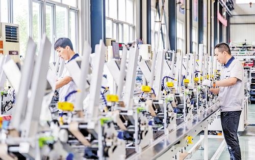 7月25日,唐山元创自动化科技股份有限公司工人正在安装产品零部件。本报记者赵杰摄