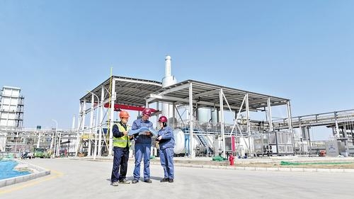 4月2日,在定州旭阳氢能有限公司日产5吨液氢示范项目建设现场,工作人员正在进行施工工艺检查。本报记者 徐华摄