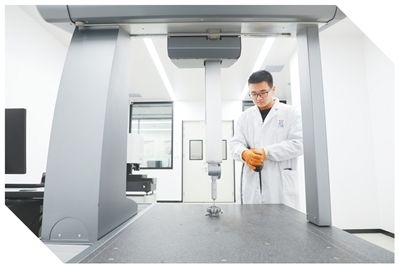 技术人员在中塞(国际)轴承产业共享实验室检测轴承三维尺寸。沈建荣摄