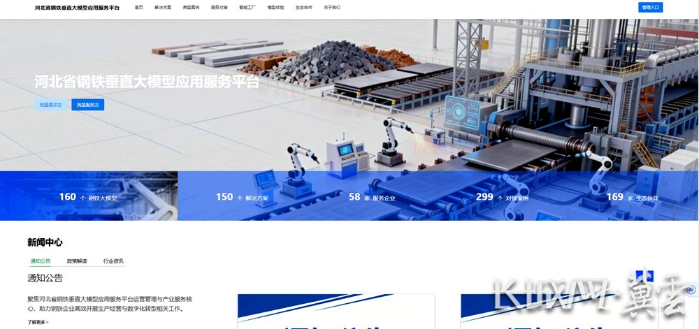 河北省钢铁行业垂直大模型应用服务平台主页。网络截图