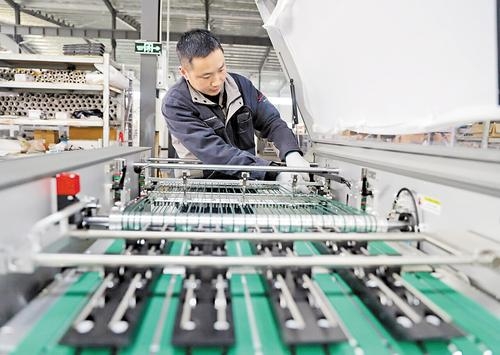 3月17日,唐山新联印刷机械集团有限公司,工人正在调试组装完成的数码喷墨轮转印刷机。本报记者 周聪聪摄