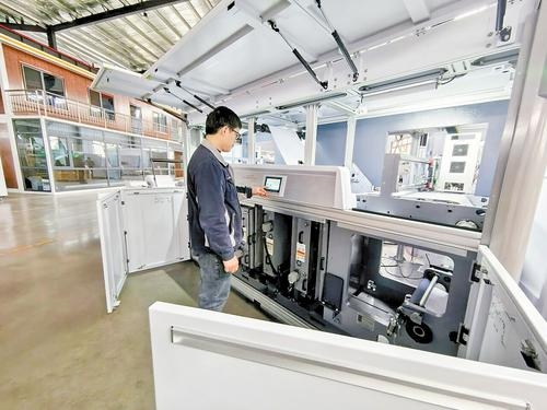 “这是我们的拳头产品,采用京瓷喷头和北大方正畅流排版技术,能实现一本起印。”公司总经理杨宇介绍,这种设备省去了传统印刷的制版环节,高效灵活,特别适配小批量、多品种、快交付的现代印刷需求。