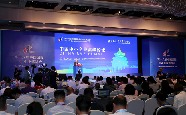 2019年6月24日,第十六届中国国际中小企业博览会(下称“中博会”)中国中小企业高峰论坛在广州举行,工业和信息化部副部长王江平、广东省副省长陈良贤、联合国工业发展组织总干事李勇、马来西亚国际贸易和工业部副部长王建民等出席论坛并致辞。论坛由工业和信息化部中小企业局局长马向晖主持。中国政府有关部门、马来西亚、联合国工业发展组织、联合国驻华系统、斐济、尼日利亚、缅甸、阿联酋等代表团官员,有关行业协会和企业代表等出席论坛。
