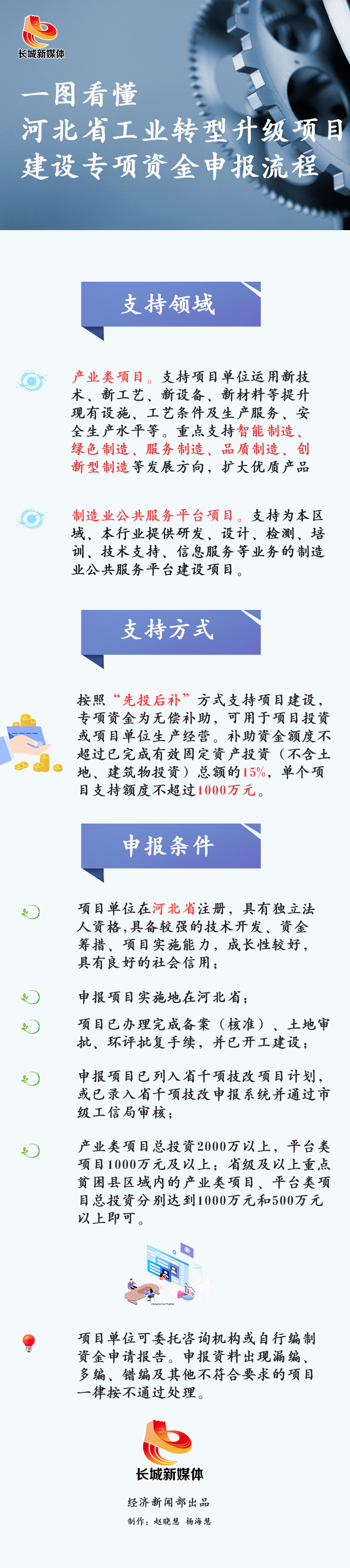 为支持企业实施产业化项目和制造业公共服务平台建设项目,日前,河北省工业和信息化厅出台《2020年河北省工业转型升级(技改)重点项目建设专项资金申报指南》,对行业龙头企业、优势企业、市场潜力大的企业和雄安新区工业转型升级、省工业转型升级试点示范县(市、区)、省级及以上新型工业化产业示范基地、重点贫困县以及京津产业转移等项目予以专项资金支持。
