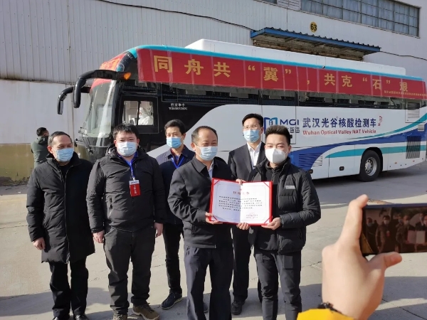 1月17日,湖北省政府捐赠的价值1000万元疫情防控物资和设备抵达我省。这批疫情防控物资包括1台核酸检测车、2套全自动核酸提纯及荧光PCR分析系统、5000套防护服、100万只医用口罩、30万只儿童口罩和1000支额温枪。
