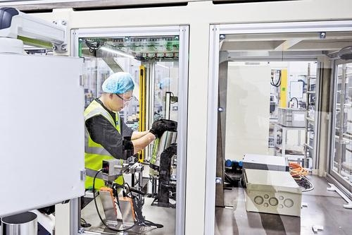 10月30日,工人在京西智行张家口工厂生产车间作业。 本报记者 耿 辉摄