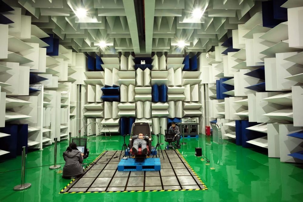 11月18日,技术人员在轨道交通产品质检中心的声学实验室内进行噪声测试。(受访单位供图)
