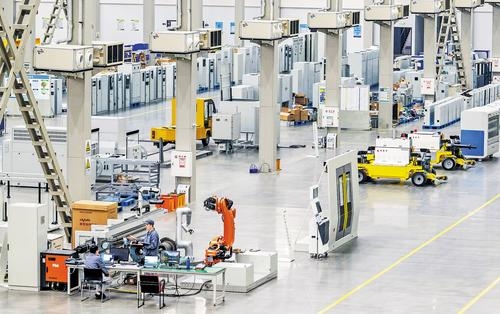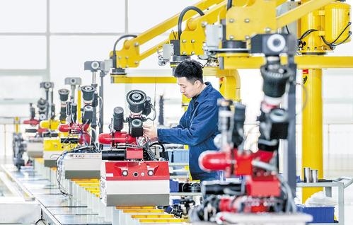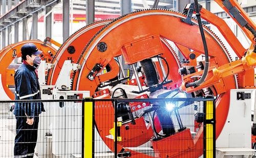 1月5日,中信重工开诚智能装备有限公司工人在生产线上组装机器人。