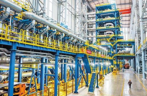 2025年7月4日,河钢集团唐钢公司员工在查看镀锌生产线。