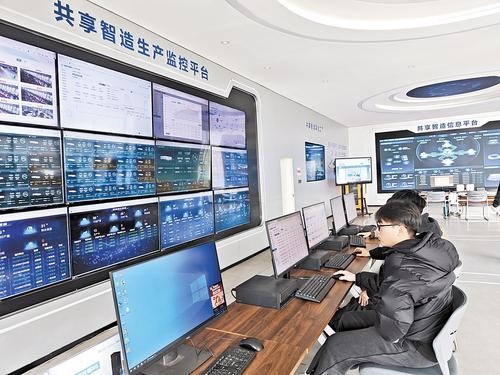 3月12日,永固安共享智造平台工作人员在监测共享设备的运行情况。本报记者 魏 雨摄