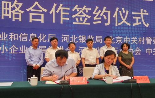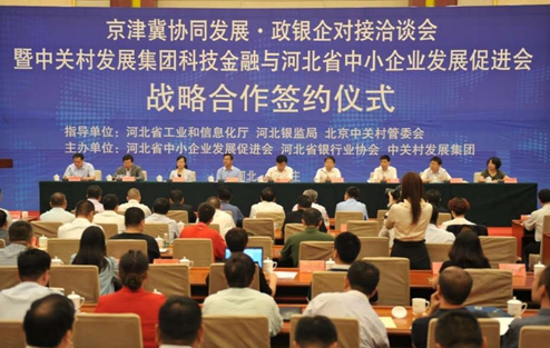 8月29日,在省工信厅、省银监局和中关村管委会联合协调和指导下,京津冀协同发展政银企对接洽谈会暨河北省中小企业发展促进会与中关村发展集团科技金融战略合作签约仪式在太行国宾馆隆重举行。同时中关村领创金融公司与促进会签订10亿元中小企业应急基金授信协议,用于向我省中小企业提供流动性资金支持。