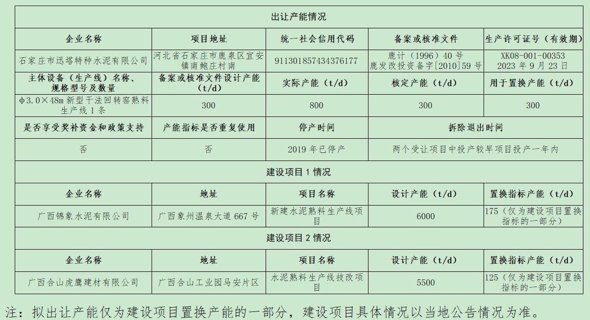 石家庄市迅塔特种水泥有限公司熟料产能出让方案