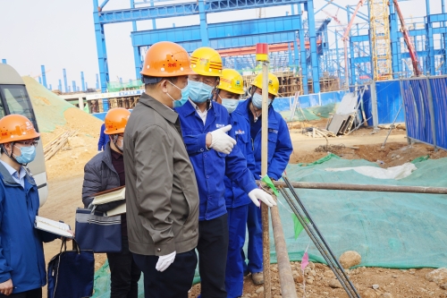 龚晓峰先后深入实地考察了立式连铸机、水处理中心、轧钢生产线、焦化生产等工地现场,听取了石钢疫情防控、复工复产、生产经营、品种结构调整、新基地建设等工作情况的汇报,主动询问并帮助解决上游供应商复工复产、项目申报等问题。河钢石钢环保搬迁升级改造项目总投资152亿元,将形成钢200万吨、钢材192万吨的高端特钢生产能力,采用节能减排优势更加突出的电炉短流程工艺,降低62%综合能耗,减排86%废气、72%废渣。在疫情防控期间采取24小时不间断施工等措施,全力抢赶工期,确保9月底前按原计划完成新基地项目建设任务。龚晓峰肯定了石钢在统筹做好疫情防控和项目建设两手抓中采取的“挑灯夜战、闻鸡起舞”等创新措施,要求石钢在确保疫情防控安全的前提下,坚持任务不减、目标不变、劲头不松,既抓生产进度和产品质量,又全力强赶工期,协调各方面资源,把疫情造成的损失降到最低限度,努力实现生产经营稳定运行和新基地建设有序推进。