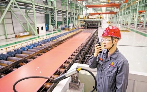 9月5日,工人在敬业集团有限公司宽厚板热轧车间作业。本报记者史晟全摄