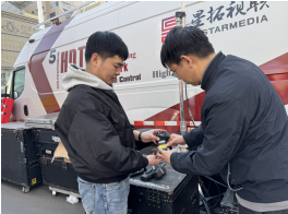 图为工作人员赛时开展实地监测,保障用频安全
