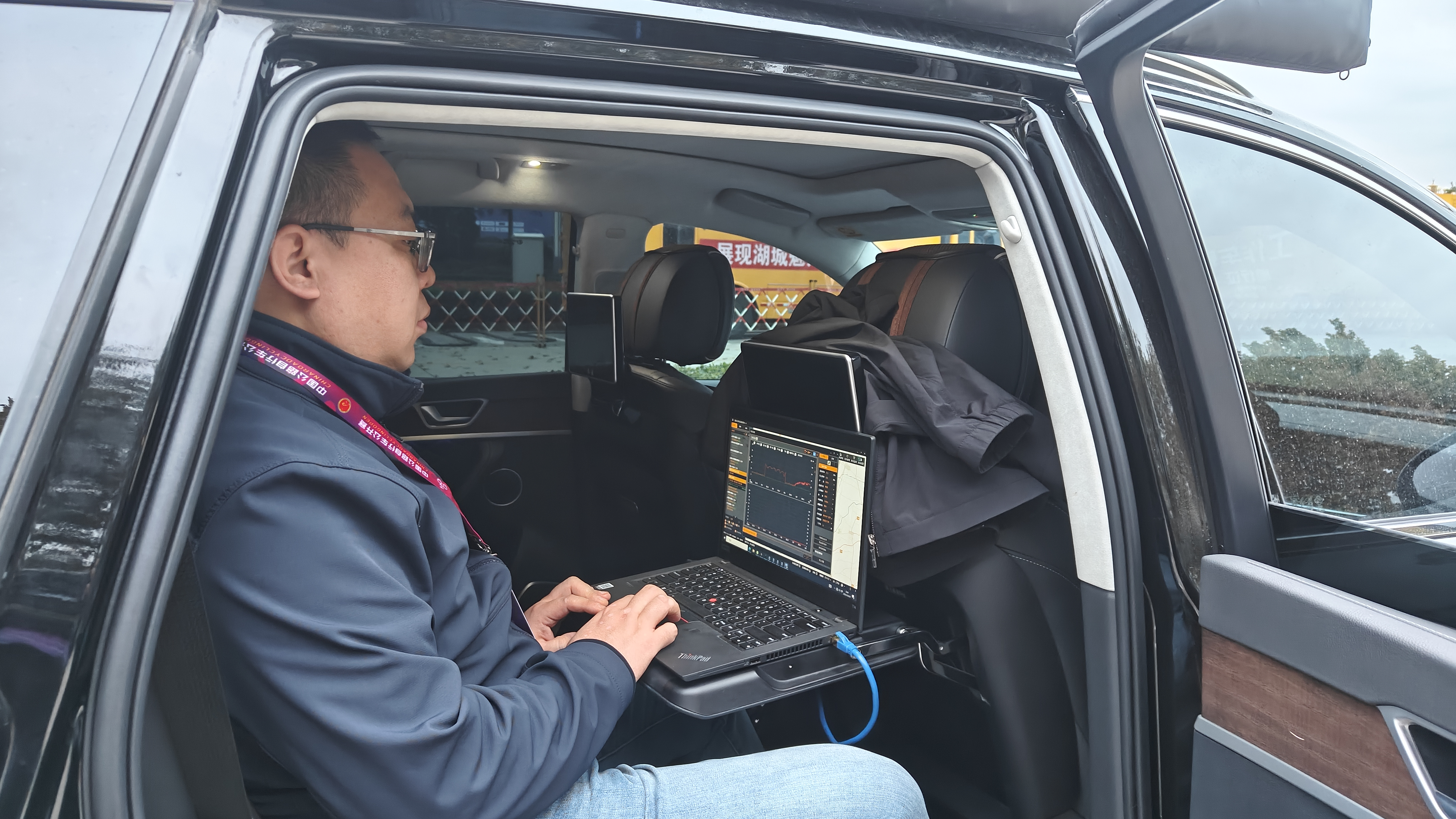 图2:监测人员使用车载设备开展现场监测保障