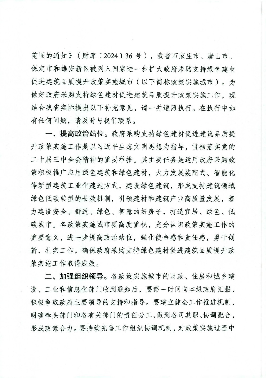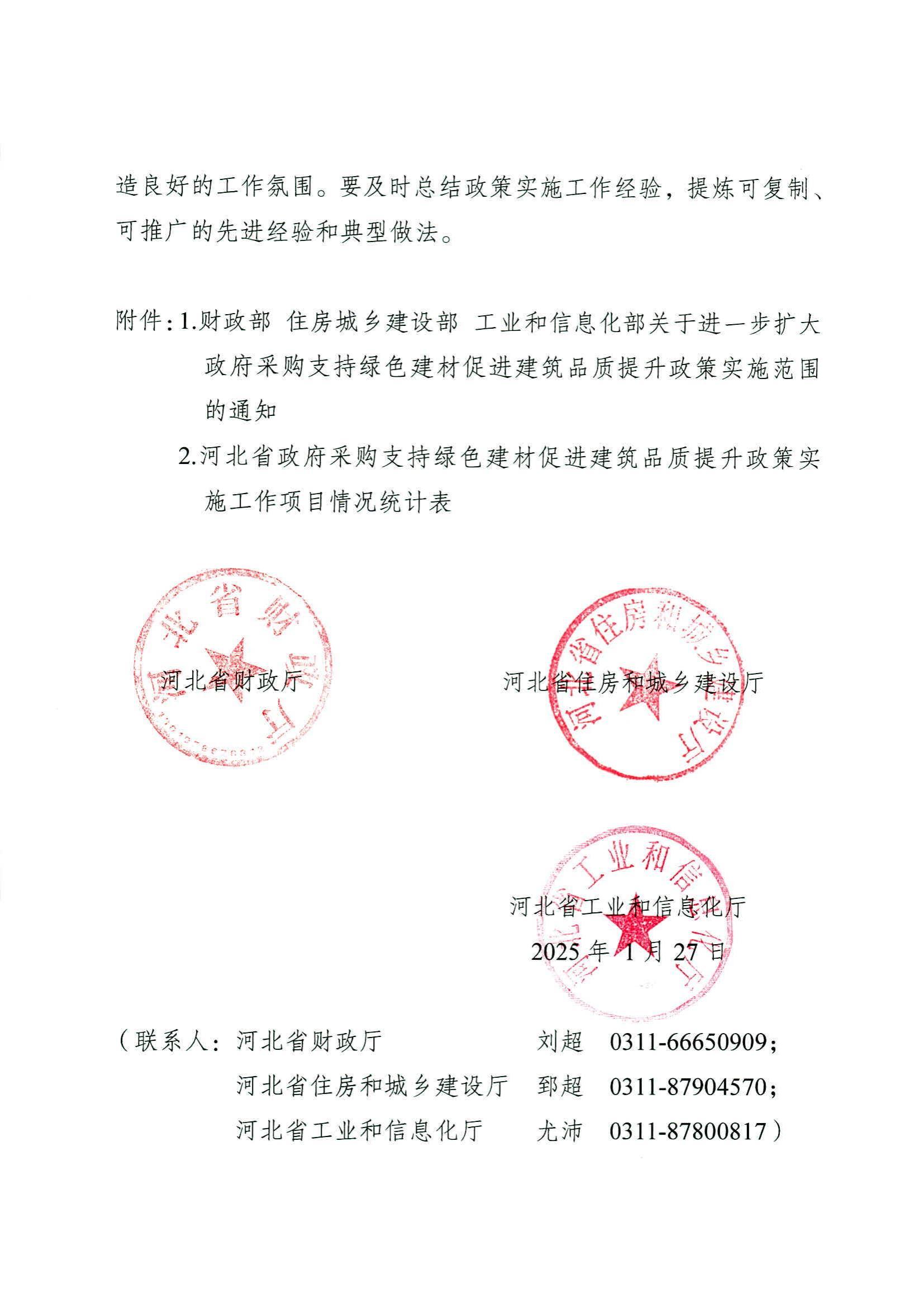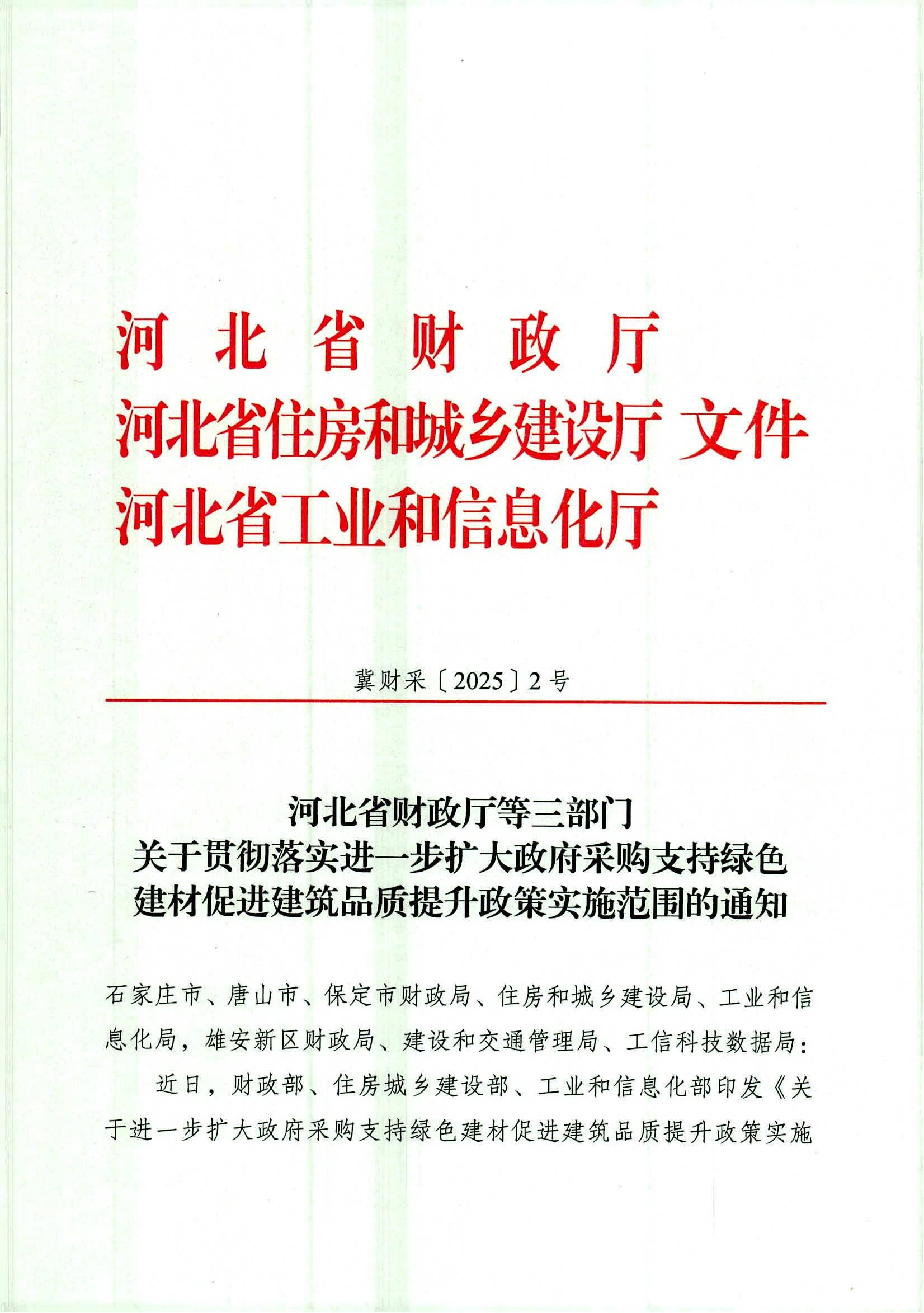 河北省财政厅等三部门关于贯彻落实进一步扩大政府采购支持绿色建材促进建筑品质提升政策实施范围的通知