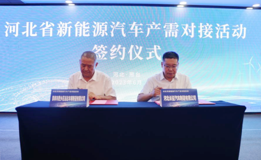 活动中举行了项目签约仪式,肥乡区远达车辆制造有限公司与河北长征汽车制造有限公司签订150辆新能源环卫车合作协议,河北骆尔德威贸易有限公司与河北长安汽车有限公司签订100辆新能源车采购协议,邢台叮叮新能源科技有限公司与河北长征汽车制造有限公司签订50辆新能源牵引车采购协议。