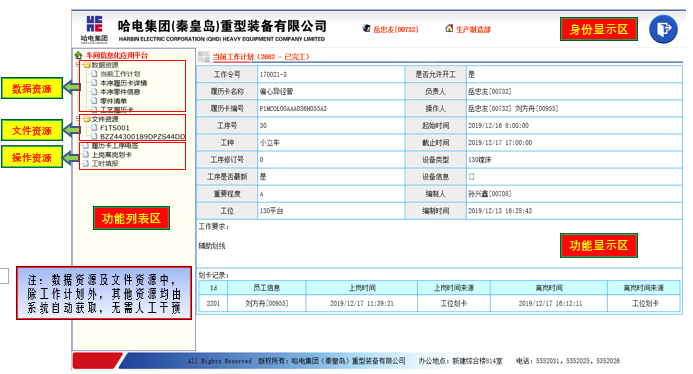 上云后哈电重装公司的云桌面在车间部署了76个点位,实现了车间A3及A3幅面以下文件的无纸化,车间工人刷卡上岗、刷卡下岗,刷卡获取各类数据资源,实现了哈电重装公司CAPP及MES系统向车间应用的延伸,为车间设备联网及数据采集提供了条件。