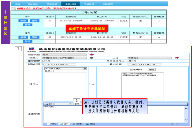 | 下发计划时间:0.5h | 工作在平台通过刷员工卡完成,耗时总计15分钟,各项辅助工作时间总计不超过1小时即可完成,完工文件整理用1个月即可完成 | |