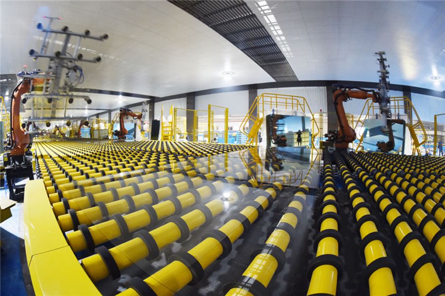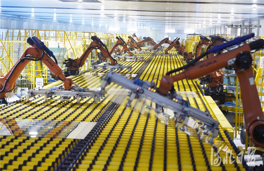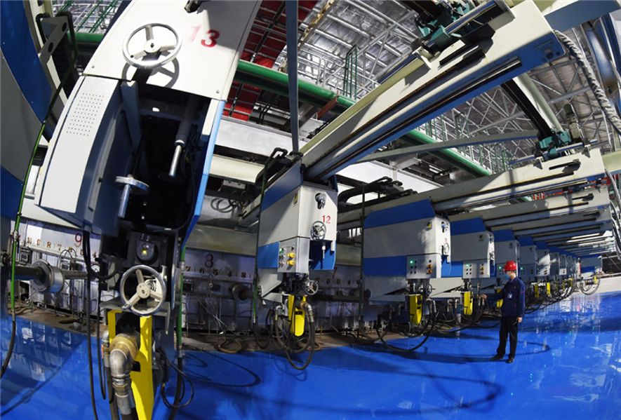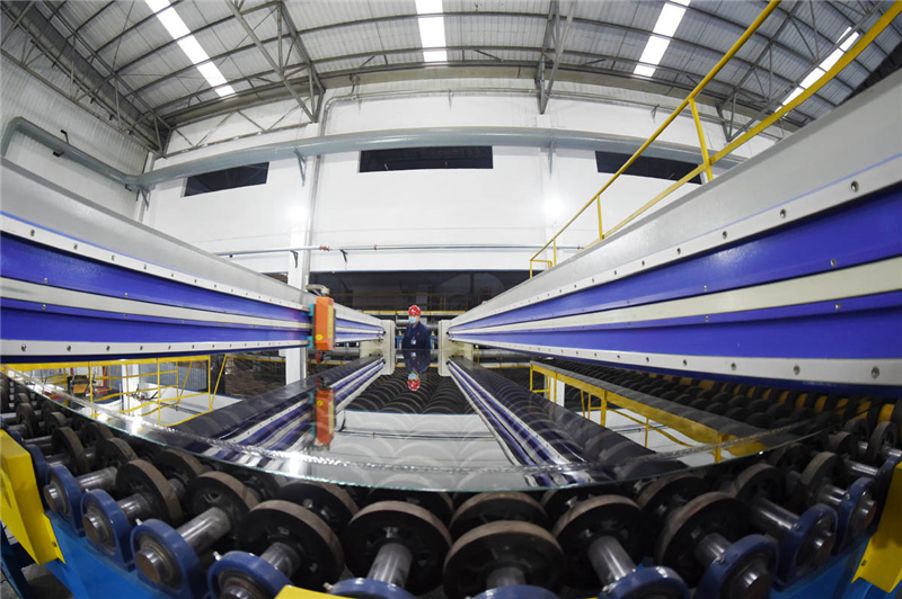 2020年11月17日,位于河北省沙河市的迎新集团河北金宏阳太阳能科技股份有限公司电子和汽车玻璃生产线,机械作业忙生产。