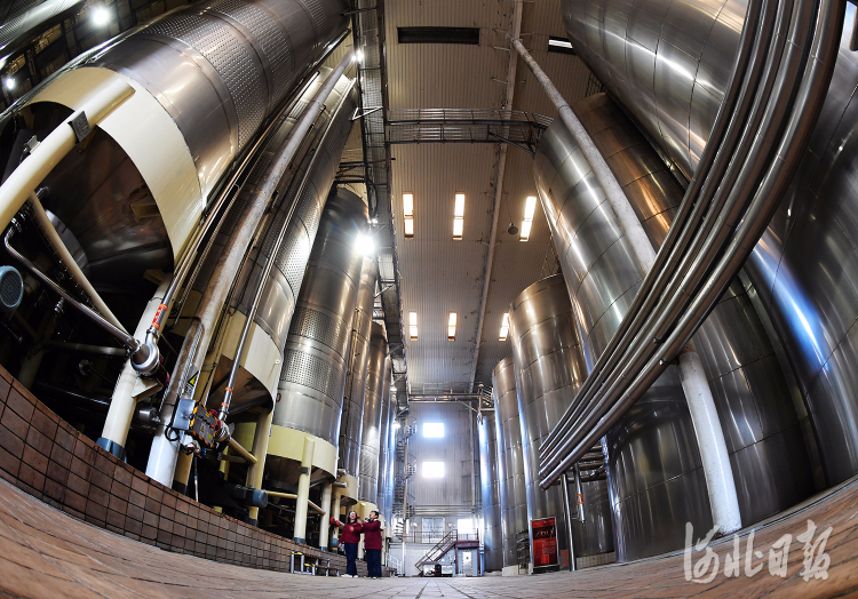 2020年11月4日,工人在河北省怀来县中国长城葡萄酒有限公司储酒车间操作生产。
