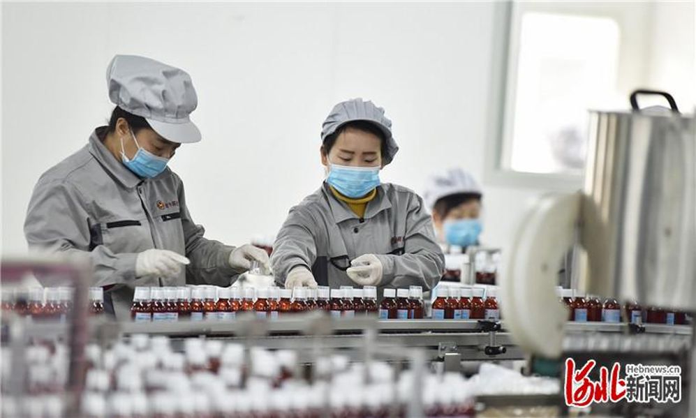 近日,在河北金牛原大药业科技有限公司车间内,工人们正在加紧生产。