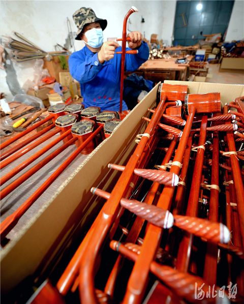 近日,河北省饶阳北方民族乐器制造有限责任公司员工加工制作二胡。