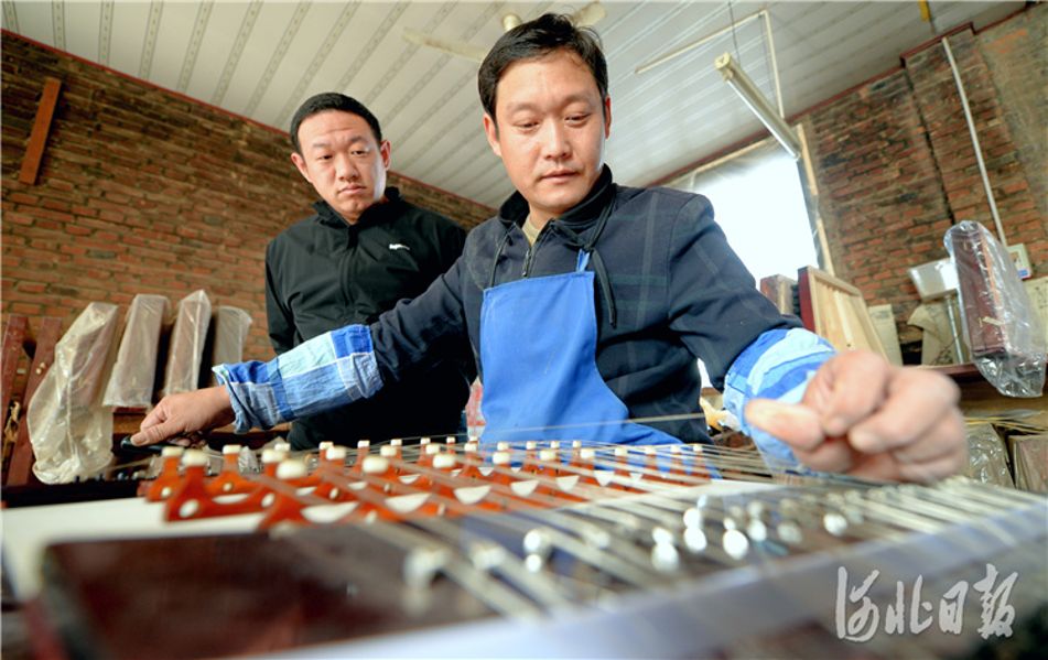 近日,河北省饶阳北方民族乐器制造有限责任公司员工调试古筝。