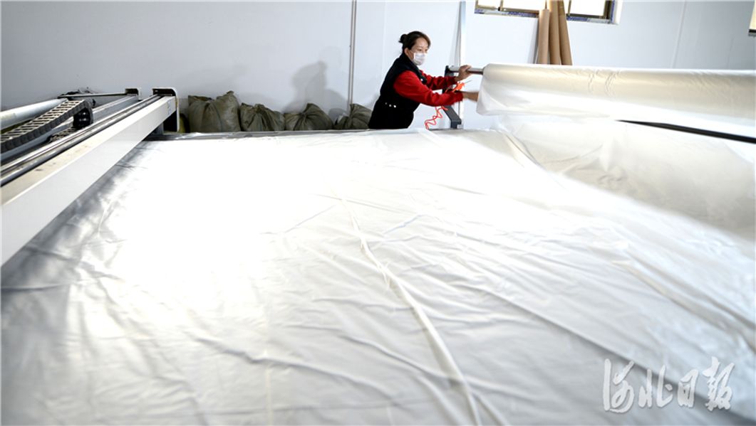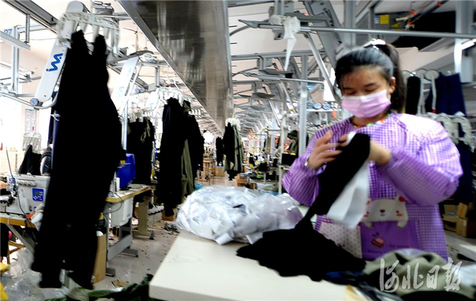 2020年11月5日,肃宁县汉姆斯诺针织服装有限公司员工加工服装。