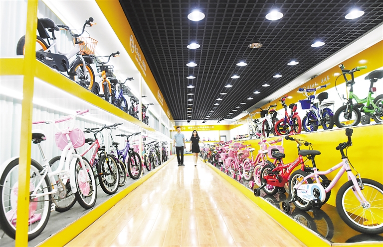 ③在曲周县亿航童车有限公司展厅,工作人员在向客户介绍产品。 河北日报记者 史晟全摄