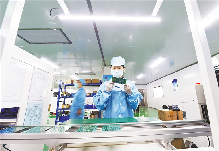 ①位于峰峰经济开发区中擎创科技园内的河北万讯智能科技有限公司生产车间内,员工在生产线上工作。河北日报记者 史晟全摄
