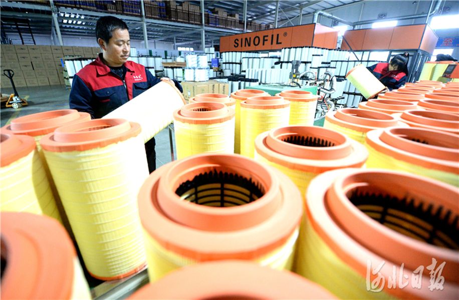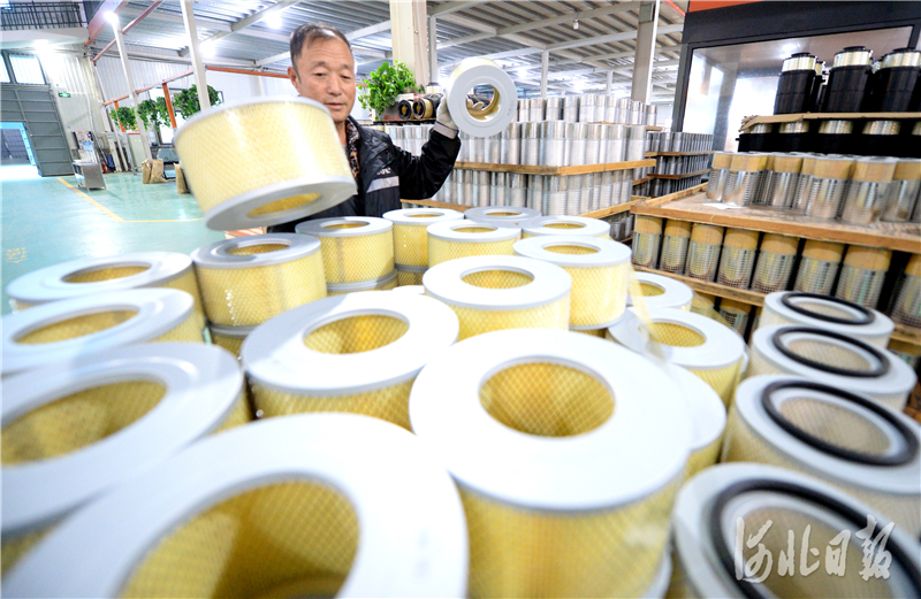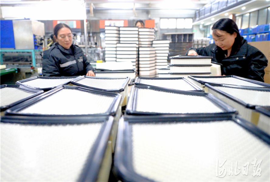2020年11月20日,位于威县汽车工业配件产业园区的河北正灿滤清器制造有限公司的员工在检验产品。