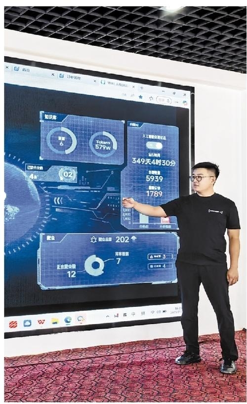 7月7日,河北省大拜科技有限公司总经理逯千里介绍WIRE AI(丝网智能体平台)情况。 本报记者 周聪聪摄
