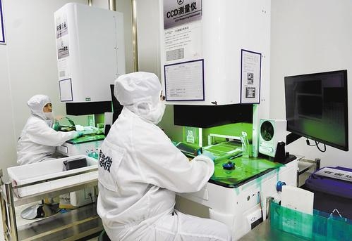 近日,稻丰智谷(固安)电子有限公司生产车间内,工作人员正在对生产的模切产品进行质量检测。吴迪摄
