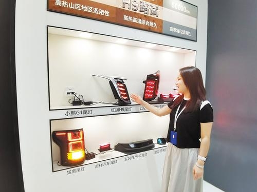 “我们生产的汽车尾灯采用了新一代显示技术OLED作为光源,不仅能显示文字、动画,还能呈现裸眼3D效果。”固安翌光科技有限公司项目经理高盼将自主研发的红旗H9车型OLED尾灯展示给记者看。