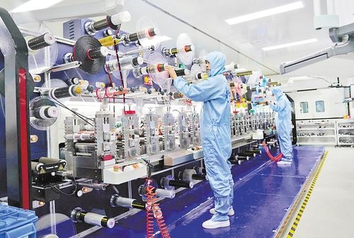 近日,稻丰智谷(固安)电子有限公司生产车间内,工作人员正在生产显示屏的一体化泡棉。吴迪摄