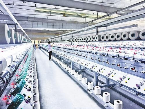 9月16日,圣翔染厂生产车间,工人进行纱线松筒。本报记者常方圆摄